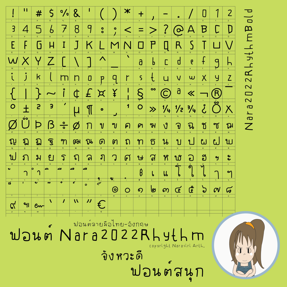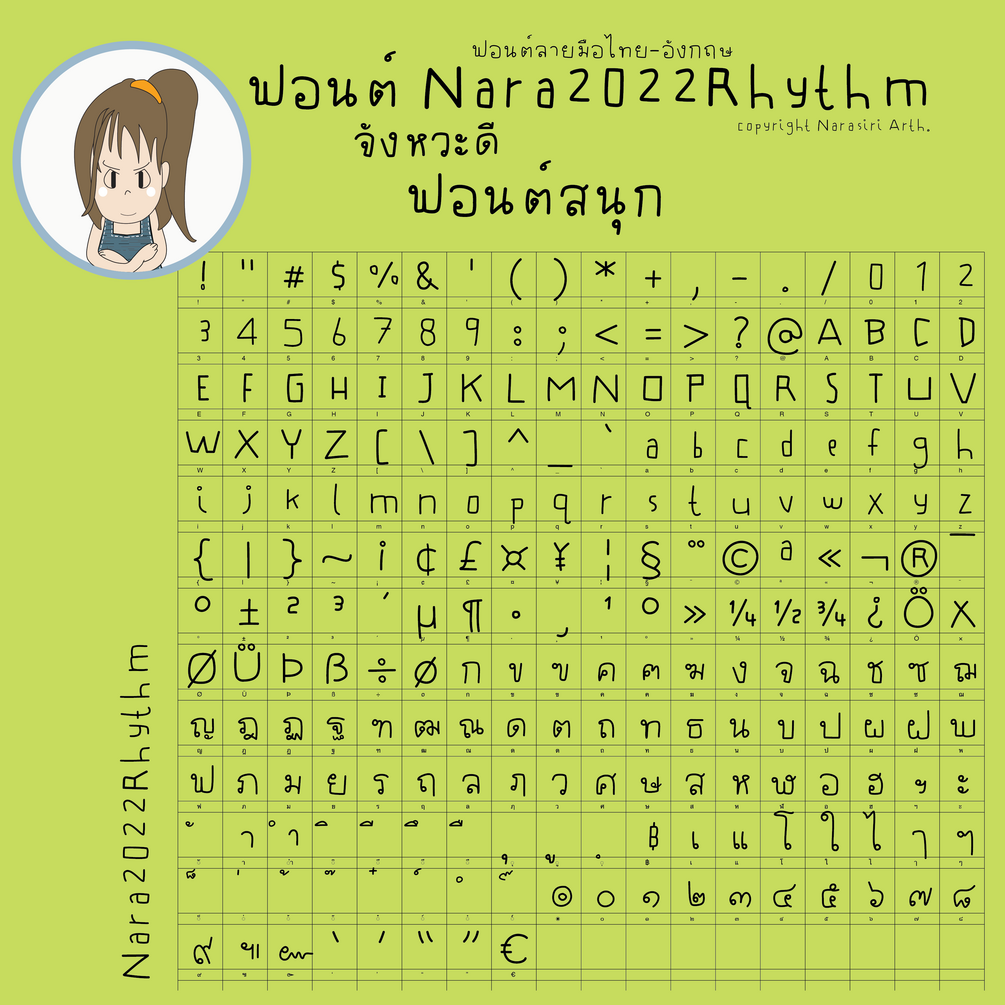 Nara2022Rhythm Font, Informal Handwriting Thai & English Font
